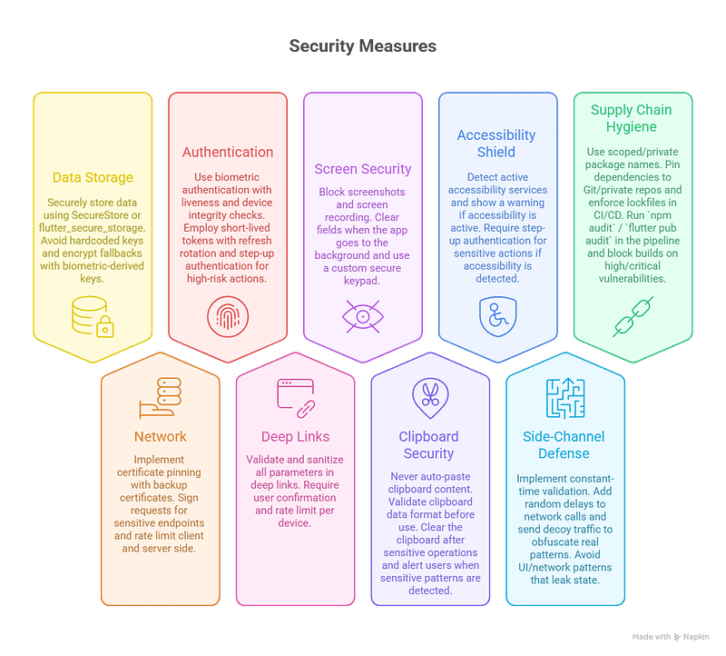 if (Platform.isAndroid) await FlutterWindowManager.addFlags(FLAG_SECURE);🔐 Bonus: Build your own secure keypad (no system keyboard) to prevent keyloggers